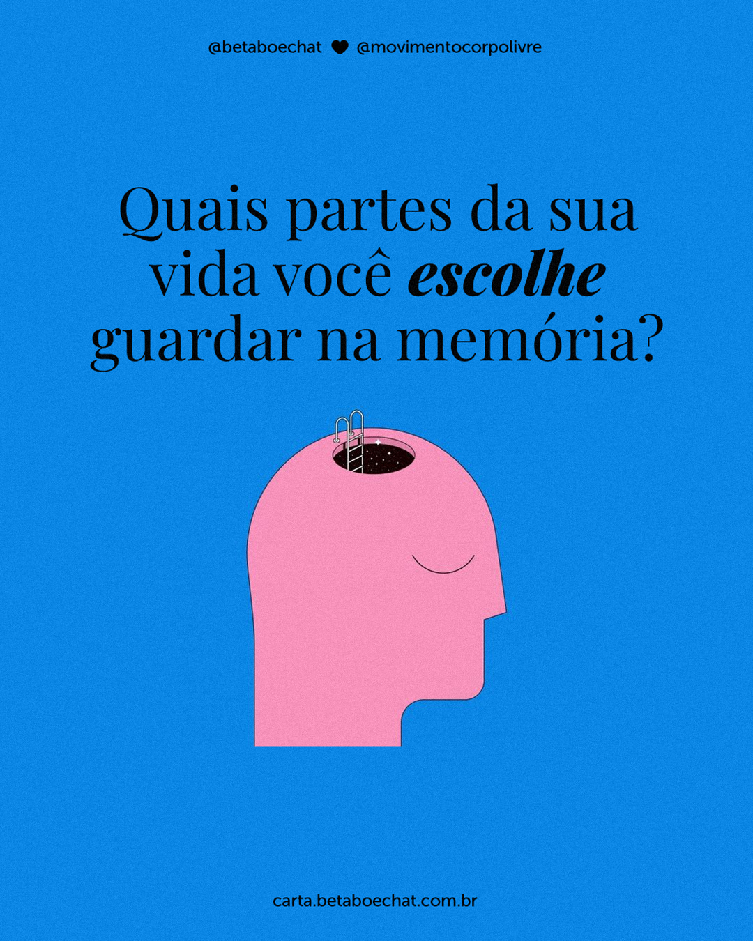 Nos apegamos muito em determinadas histórias, mas as armadilhas da nossa cabeça são ainda mais profundas. Em algum momento, as lentes que usamos pra ver o mundo já estão tão turvas que só conseguimos ver em todas as nossas vivências, aquele pedacinho que prova o que a gente quer sentir. De tudo o que eu vivi no meu relacionamento, eu só lembro daquilo que mostra que o problema sou eu. De toda a minha infância, minha memória só puxa os dias que minha autoestima foi destruída. E por assim vai.